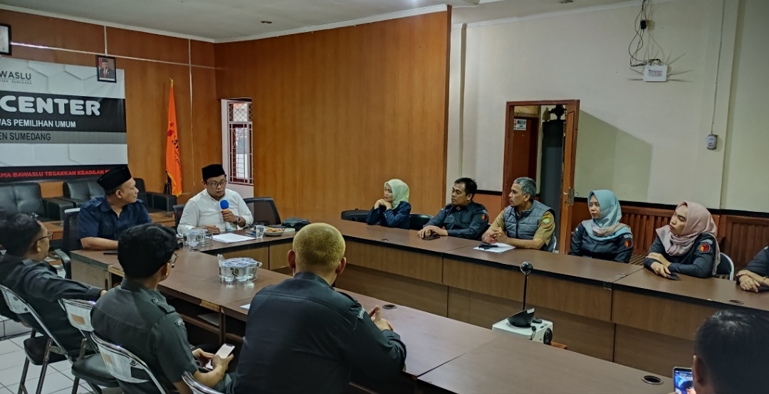 Sumedang,-- Ketua Bawaslu Provinsi Jawa Barat Abdullah Dahlan melakukan kunjungan ke kantor sekretariat Bawaslu Kabupaten Sumedang, diterima secara langsung oleh pimpinan dan staf sekretariat Bawaslu Sumedang yang bertempat di ruangan media center Bawaslu. Senin (08/05/2023)