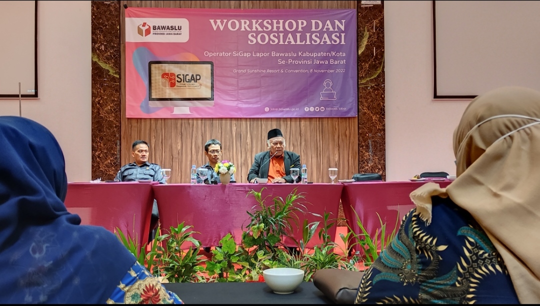 Kegiatan workshop dan sosialisasi Sigap Lapor menghadirkan narasumber, Dr. Ahmad Fiqri, M.H, yang merupakan praktisi hukum dan Dr. Hj. Ummi Maskanah, M.Hum, mantan hakim Jakarta dan tim teknisi dari Bawaslu RI. Dihadiri oleh koordinator divisi Penanganan Pelanggaran dan satu orang staf operator Kabupaten/Kota se-Jawa Barat.
