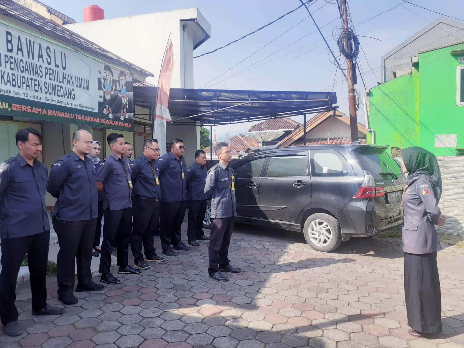 Sumedang, Bawaslu Kabupaten Sumedang saat ini sedang berfokus dalam rekrutmen Panitia Pengawas Pemilu Kecamatan. Apel pagi Bawaslu Kabupaten Sumedang berlangsung di pelataran kantor Bawaslu Kabupaten Sumedang. Senin, (19/09).