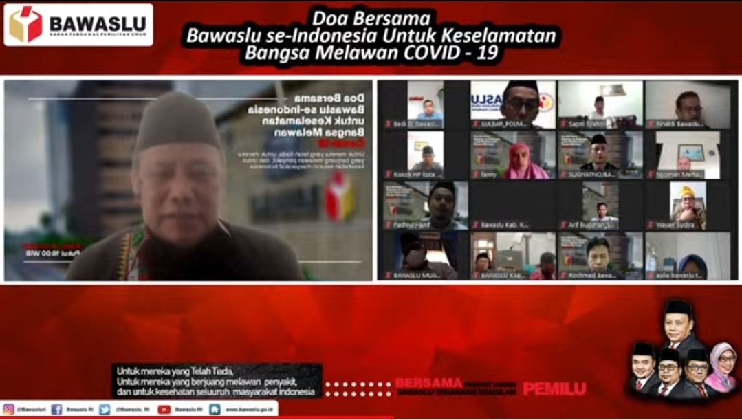 Bawaslu se-Indonesia melakukan doa bersama untuk memohon keselamatan bangsa melawan pandemi Covid-19.Kami berdoa untuk mereka yang telah tiada, untuk mereka yang sedang berjuang melawan penyakit, serta untuk kesehatan seluruh masyarakat Indonesia.