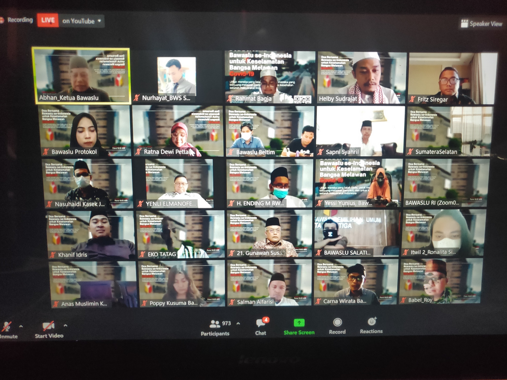 Foto kegiatan Daring Doa Bersama Bawaslu Se-Indonesia yang diikuti lebih dari seribu peserta dari sabang sampai merauke. (8/7)[/caption]