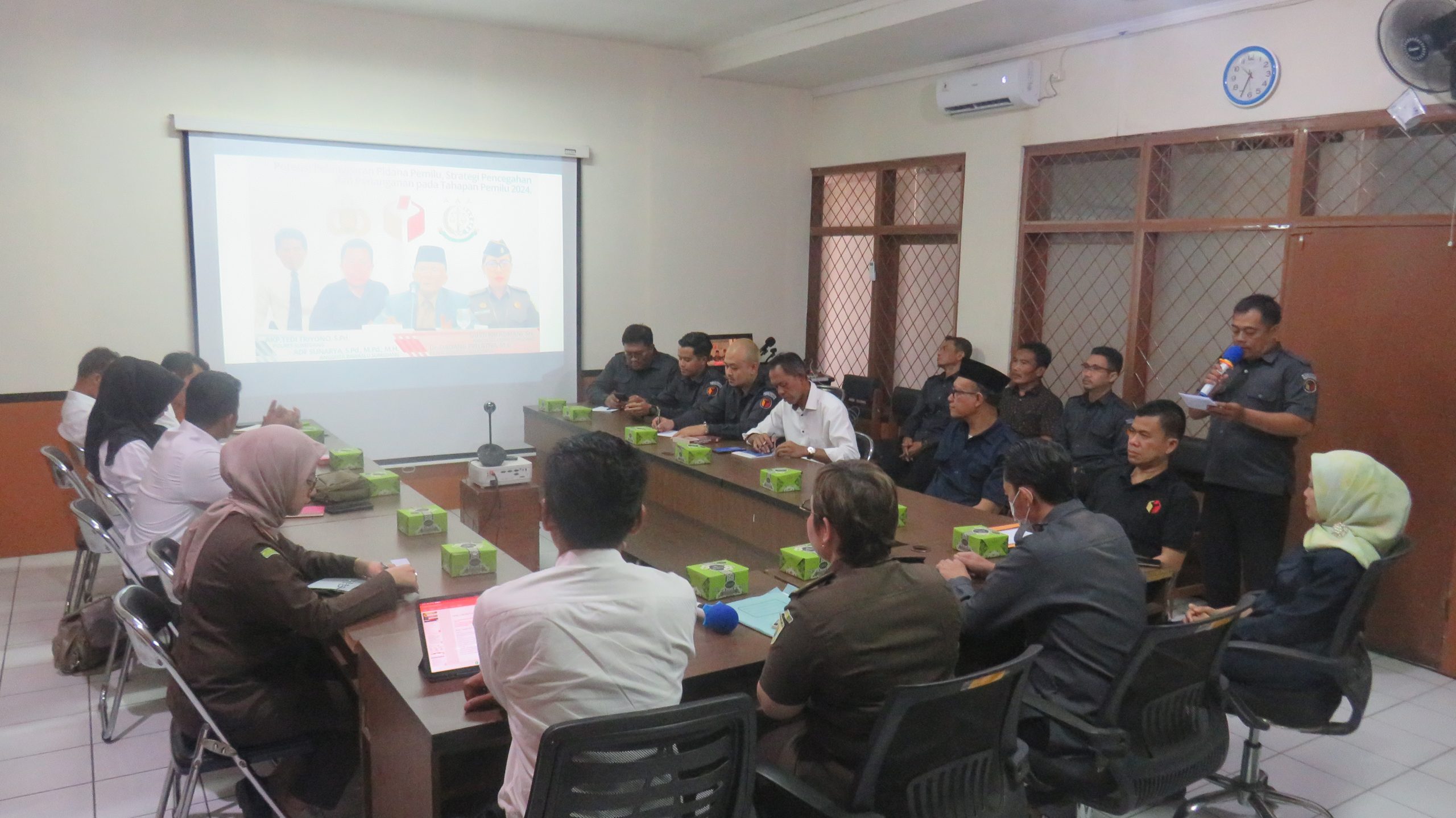 Rapat dengan tema Potensi Pelanggaran Pidana Pemilu, Strategi Pencegahan dan Penanganan pada Tahapan Pemilu 2024. Hadir pimpinan Bawaslu provinsi Jawa Barat Sutarno dan pimpinan Bawaslu Kabupaten Sumedang narasumber dari kejaksaan negeri Sumedang dan Polres Sumedang.