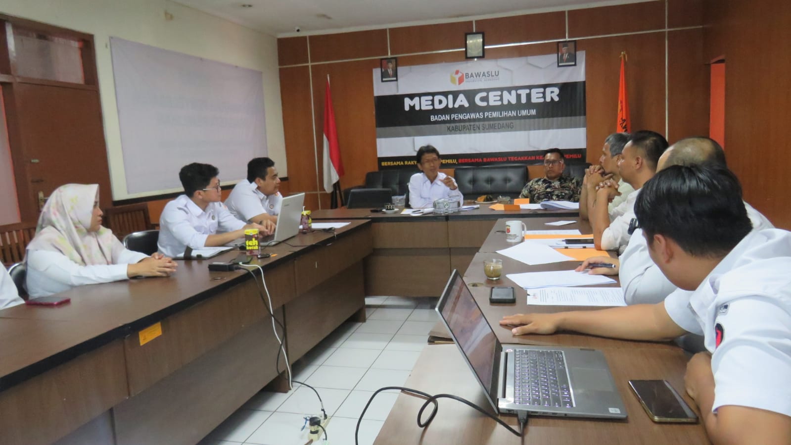 Pimpinan Bawaslu Provinsi Jawa Barat Yulianto, S.H., M.H, melakukan kunjungan sekaligus monitoring terkait dengan pengawasan administrasi bakal calon DPD bertempat di aula media center Bawaslu Sumedang. Rabu (04/01/2022)