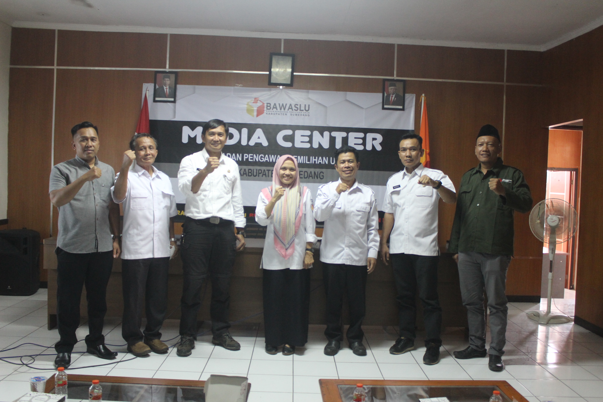 Diskusi juga dihadiri langsung Ketua Bawaslu Sumedang DR. Dadang Priyatna, M.Si, Anggota Bawaslu Sumedang Ade Sunarya, S.Pd., M.Pd., MH., Minnatillah, S.Pd, Luli Rusly, SE dan Dodoy Cardaya, S.Ag.