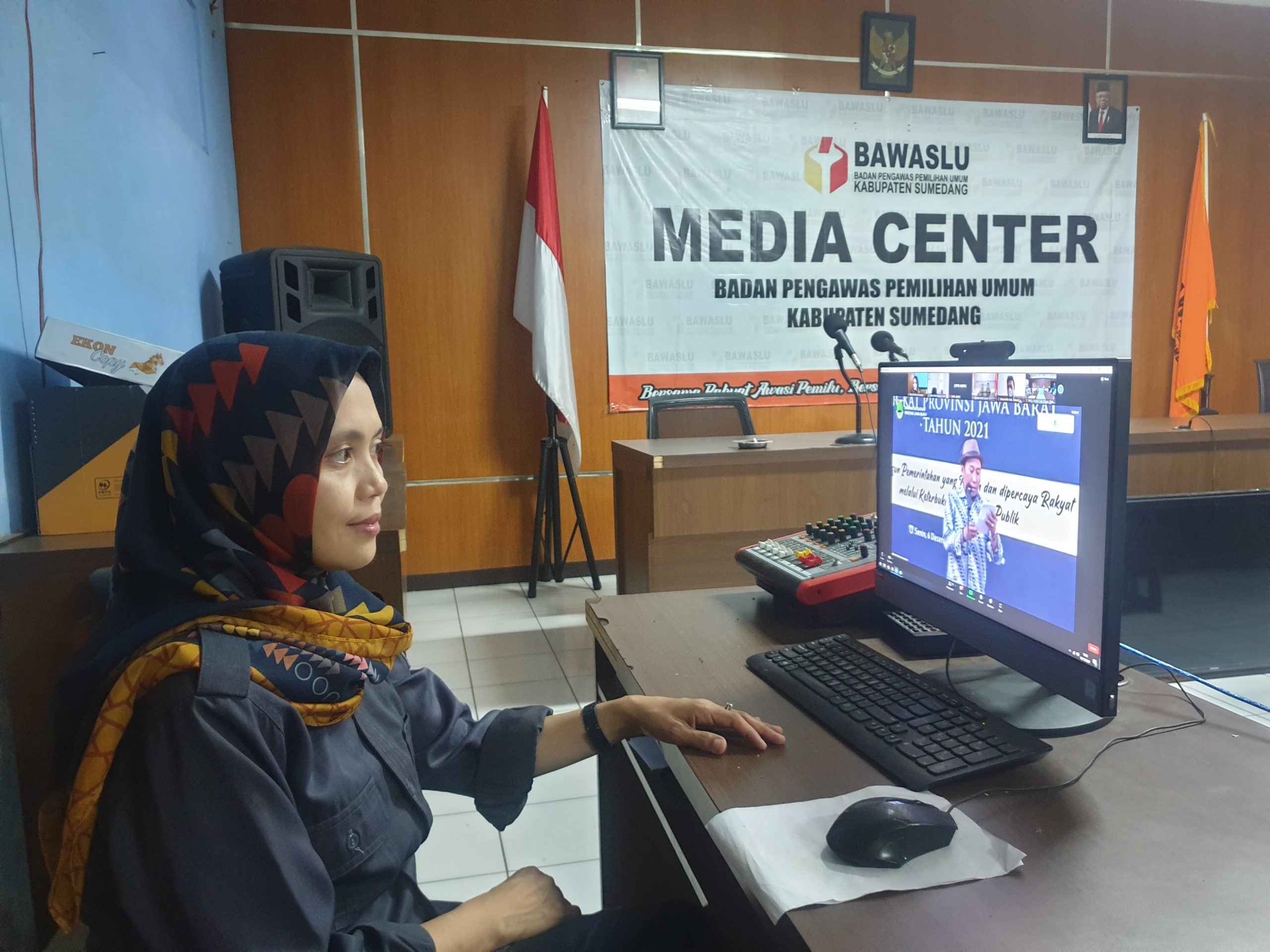 Anggota Bawaslu Kabupaten Sumedang Minnatillah menghadiri undangan kegiatan Anugerah Keterbukaan Informasi Publik Jawa Barat Tahun 2021 secara daring dari kantor Bawaslu Kabupaten Sumedang. Senin, (6 Desember 2021)[/caption]