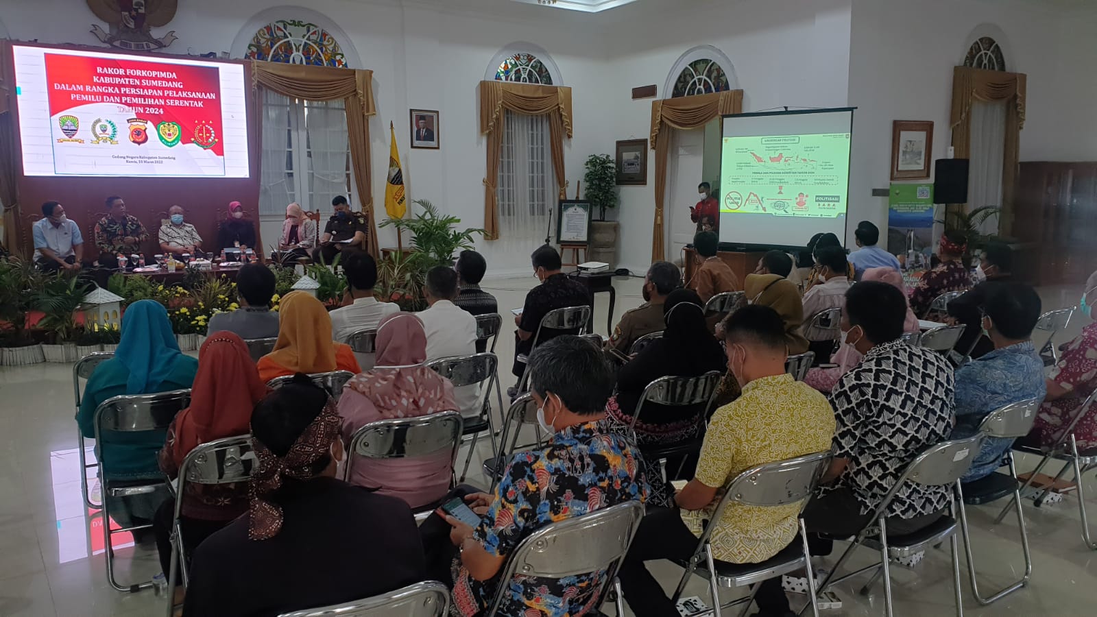 Kegitan ini dalam rangka persiapan pelaksanaan Pemilu dan Pemilihan Kepala Daerah Serentak tahun 2024 di Kabupaten Sumedang, sebagai upaya koordinasi dari unsur FORKOPIMDA (Forum Komunikasi Pimpinan Daerah) Kabupaten Sumedang, dengan tujuan agar adanya kesepahaman bersama serta kesiapan seluruh pemangku kepentingan mengenai tahapan Pemilu, khususnya Pemilihan Kepala Daerah tahun 2024 di Kabupaten Sumedang.