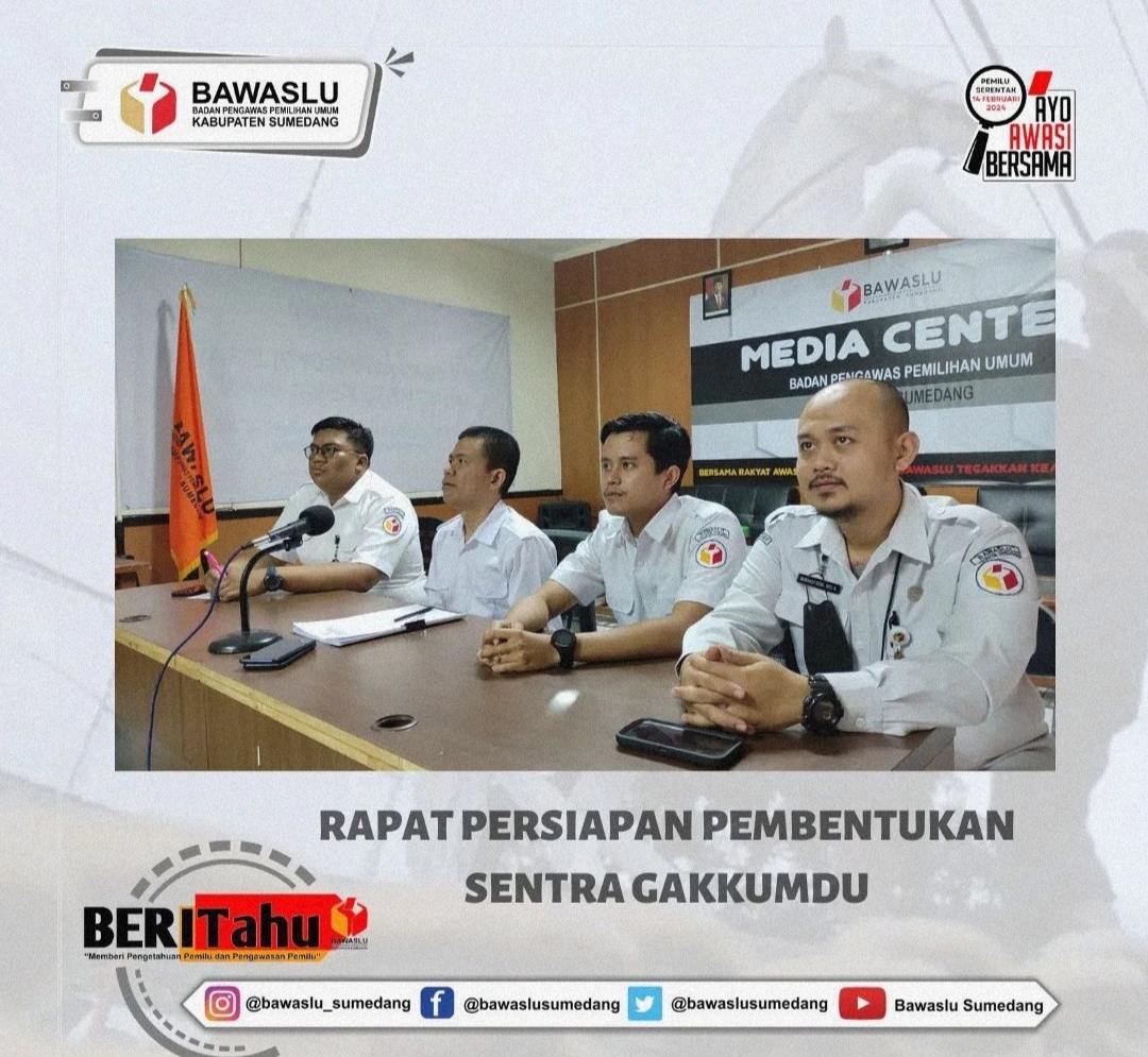 Menurut kordiv penanganan pelanggaran Bawaslu Jawa Barat Sutarno, S.H., M.H, persiapan pembentukan Sentra Gakkumdu baik di Bawaslu provinsi maupun Bawaslu kabupaten/kota sebagai tindak lanjut dari surat Ketua Bawaslu RI kepada Ketua Bawaslu Provinsi dan diteruskan kepada Bawaslu Kabupaten/Kota.