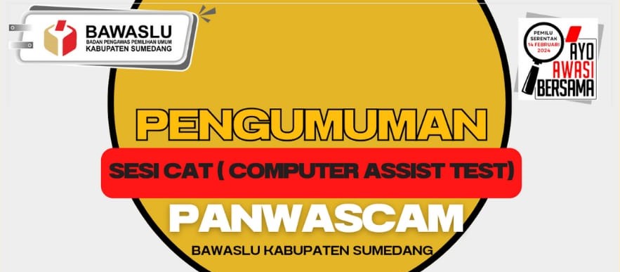 JADWAL PESERTA TES TERTULIS ONLINE CALON ANGGOTA PANITIA PENGAWAS PEMILIHAN KECAMATAN BAWASLU KABUPATEN SUMEDANG PROVINSI JAWA BARAT DALAM RANGKA PEMILU SERENTAK TAHUN 2024