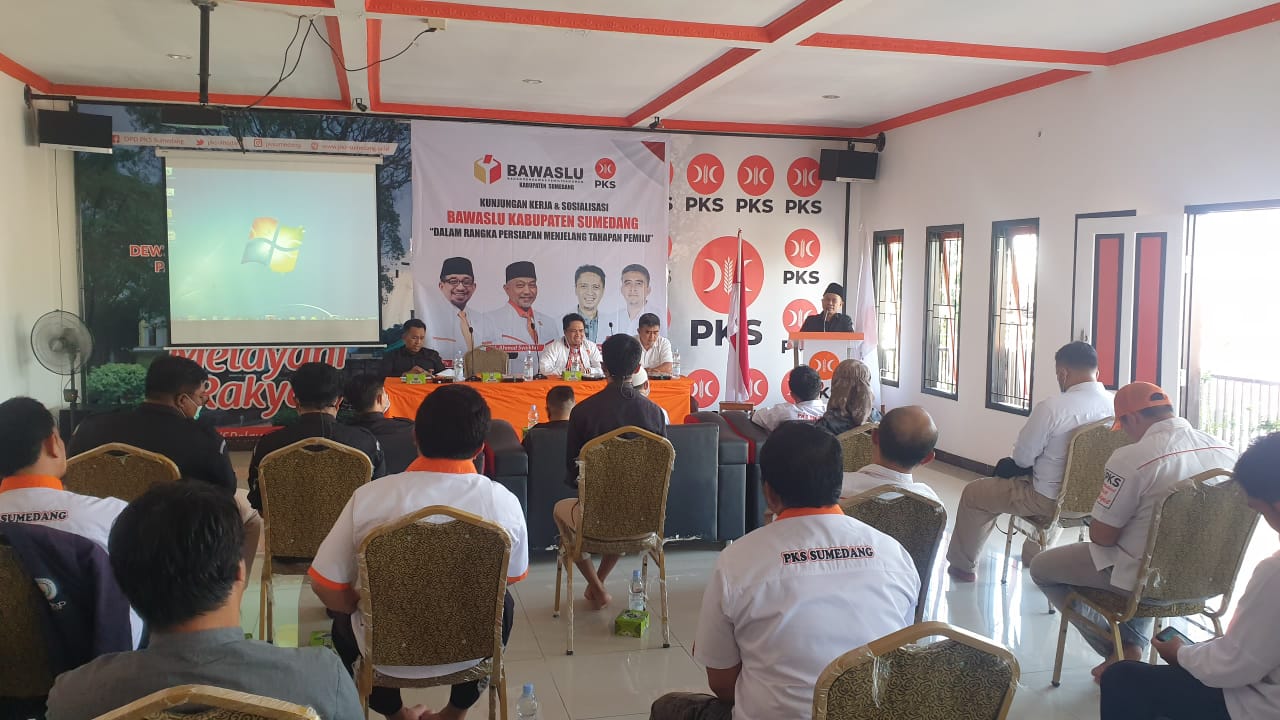 Sumedang,-- Pimpinan Bawaslu Kabupaten Sumedang dalam melakukan sosialisasi tahapan pemilu, kembali melakukan kunjungan kerja ke DPD Partai PKS Kabupaten Sumedang. Diterima secara langsung oleh seluruh jajaran pengurus DPD PKS di aula utama, JL. Mayor Abdul Rachman No.107, Kotakaler, Kec. Sumedang Utara, Kabupaten Sumedang. Kamis (07/072022)