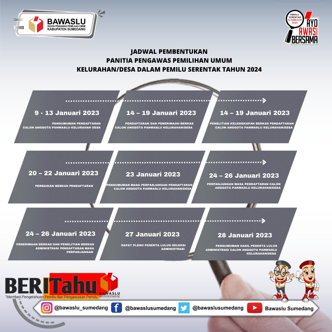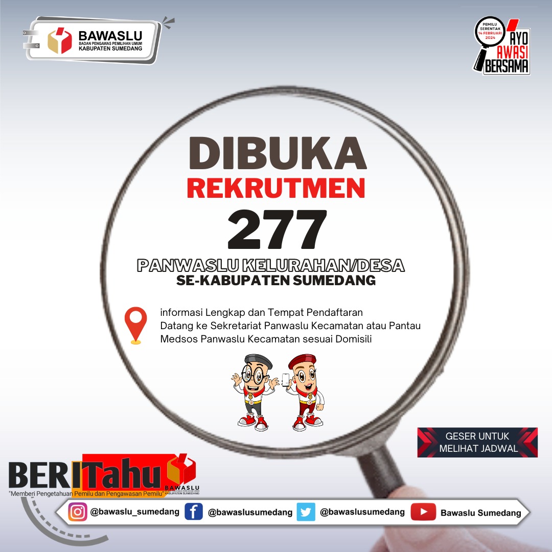 Pendaftaran PKD (Panwaslu Kelurahan/Desa) humas | Rabu, Januari 11, 2023 - 14:09 Tag Berita Share Berita Terkini humas Kamis, Desember 11, 2025 - 15:12 Bawaslu Sumedang Perkuat Implementasi Program Jum'at Sehati dan Jumpa Berlian humas Senin, Desember 8, 2025 - 17:06 Kawal Akurasi Data Pemilih, Bawaslu Sumedang Awasi Pleno PDPB Triwulan IV humas Rabu, Desember 3, 2025 - 10:52 Bawaslu Sumedang Sambangi KPU Sumedang Pastikan Pemutakhiran Data Pemilih Berkelanjutan Lihat Lainnya