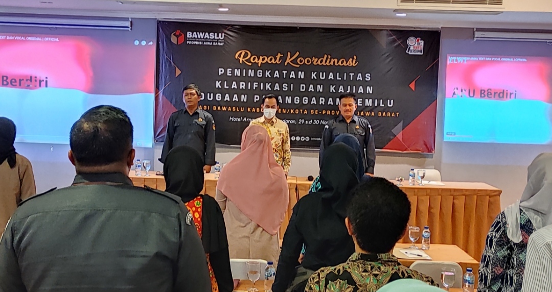 Kegiatan rakor diselenggarakan dalam rangka menghadapi tahapan pemilu, terutama apabila terjadi adanya dugaan pelanggaran pemilu. Menghadirkan narasumber dari Bawaslu Provinsi Jawa Barat, dosen hukum Trisakti Dr. Radian Syam, M.H., dan tokoh pemuda Jawa Barat KH. Dr. Yayan Bunyamin, M.Phil. Menurut ketua pelaksana Setia Budi, M.H menyampaikan bahwa.