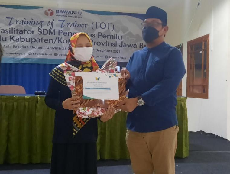 Training of Trainer (TOT) Fasilitator SDM Pengawas Pemilu Bawaslu Kabupaten/Kota se-provinsi Jawa Barat Anggota Bawaslu Sumedang Terima Penghargaan