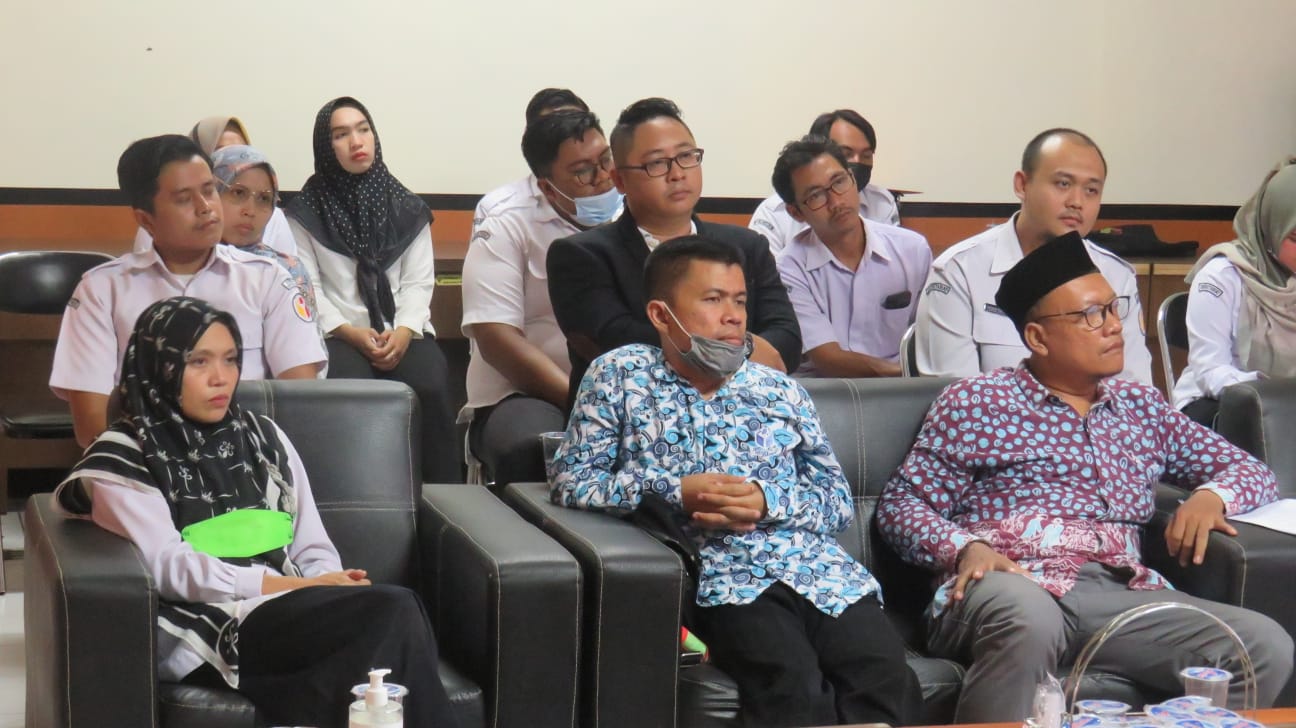 Pimpinan dan jajaran sekretariat Bawaslu Kabupaten Sumedang mendengarkan arahan Yulianto, S.H.,M.H terkait Penyusunan Putusan Penyelesaian Sengketa, bertempat di Aula Media Center Bawaslu Kabupaten Sumedang. Rabu (25/05/2022) - Dok: Humas Bawaslu Sumedang