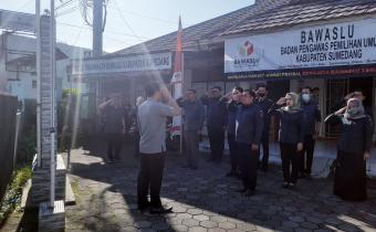 Sumedang,-- Pimpinan Bawaslu Kabupaten Sumedang bersama seluruh staf sekretariat, melaksanakan apel pagi di halaman kantor sekretariat Bawaslu Kabupaten Sumedang. Senin (18/07/2022)
