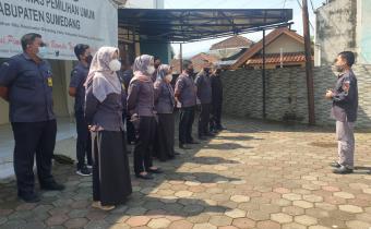 Sumedang,-- Seluruh jajaran pimpinan Bawaslu Kabupaten Sumedang beserta staf kesekretariatan, melaksanakan apel pagi di halaman kantor sekretariat Bawaslu Kabupaten Sumedang.