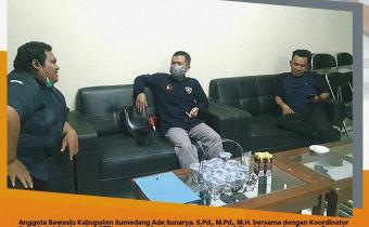 Sumedang,-- Anggota Bawaslu Kabupaten Sumedang Ade Sunarya, S.Pd.,M.Pd.,MH, bersama koordinator sekretariat Nurhayat, S.STP, menerima kunjungan dari staf biro hukum dan humas Bawaslu Republik Indonesia di kantor sekretariat Bawaslu Kabupaten Sumedang. Jum'at (21/01/2022).