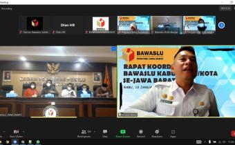 Sumedang, -- Pimpinan Bawaslu Kabupaten Sumedang mengikuti rapat koordinasi Bawaslu Kabupaten/Kota se-Jawa Barat, yang diselenggarakan oleh Bawaslu Jawa Barat melalui rapat zoom. Bertempat di aula rapat media center kantor sekretariat Bawaslu Kabupaten Sumedang. Senin (12/01/2022)