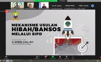 Sumedang, -- Ketua Bawaslu Kabupaten Sumedang Dr. Dadang Priyatna, M.Si mengikuti rapat daring dari Badan Kesatuan Bangsa dan Politik Kabupaten Sumedang, terkait pemberitahuan sosialisasi pengajuan proposal hibah melalui SIPD.