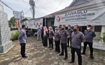 [caption id="attachment_1152" align="aligncenter" width="720"] Anggota Bawaslu Kabupaten Sumedang Dodoy Cardaya selaku pembina apel memberikan arahan kepada ja