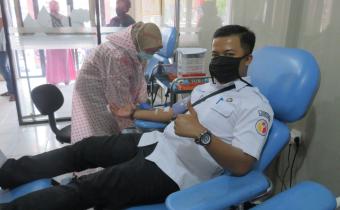 [caption id="attachment_367" align="alignnone" width="720"] Salah satu staf Bawaslu mengikuti aksi donor darah dalam rangka 12 Tahun BAWASLU di kantor PMI Kabupaten Sumedang.